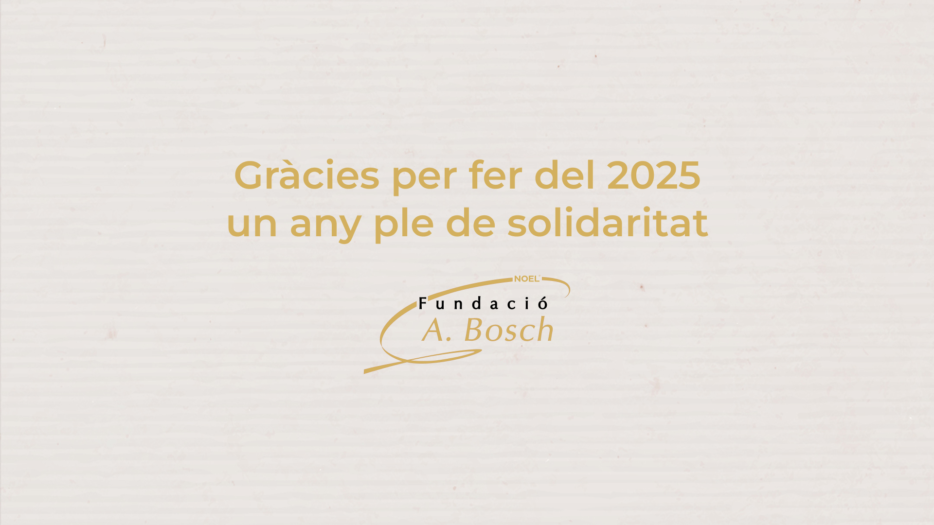 Desde la Fundació A. Bosch, queremos expresar nuestro más sincero agradecimiento a todas las personas y organizaciones que han hecho posible este año tan lleno de solidaridad. Vuestro esfuerzo, dedicación y compromiso son imprescindibles para seguir avanzando en la investigación y para ofrecer esperanza a tantos niños y familias.